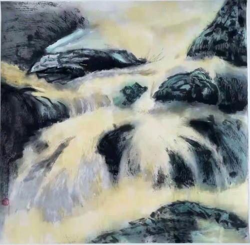 国画《心溪》四尺对开(斗方)创作于 1980 年