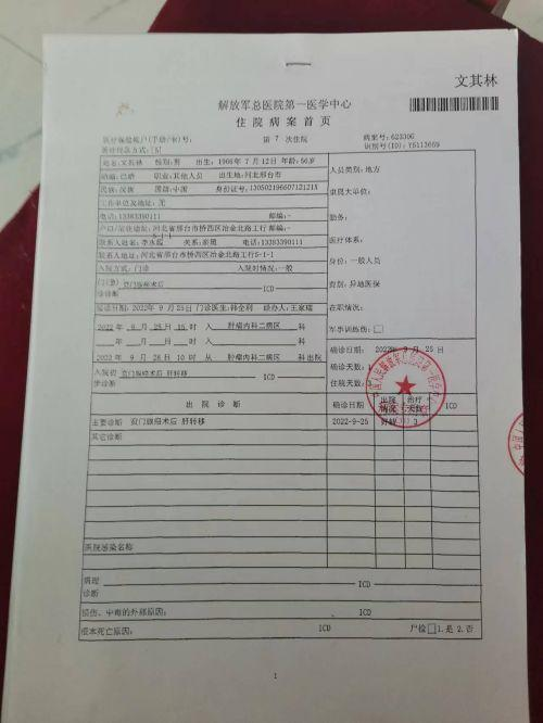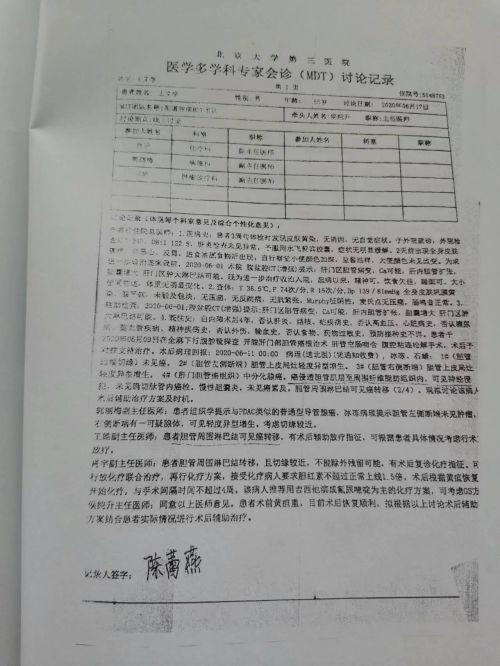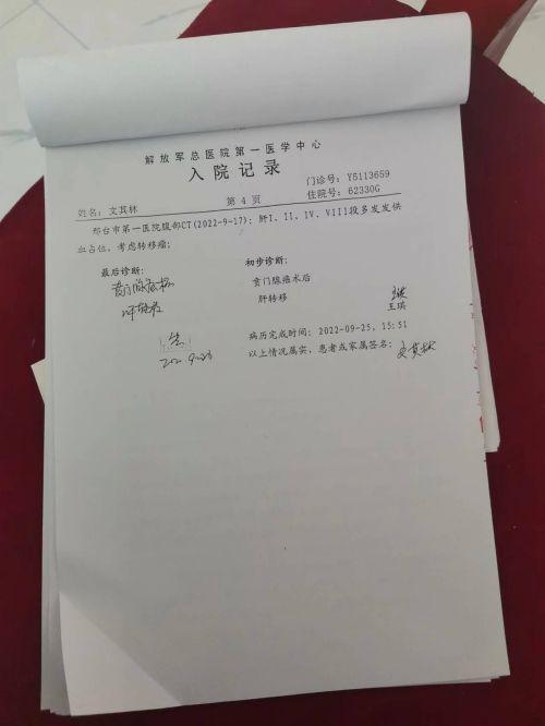 文其林于2020年8月11日在301医院行左侧开胸手木(贲门癌手术)。文其林:贲门癌术后(两年肝转移7cmx6㎝)。谢绝外院(包括301医院在内),直接奔向山西。