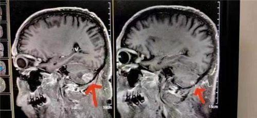 The patient underwent examination and treatment at Beijing 301 Hospital, and the results showed that the left brain tumor was larger than the right brain tumor. Chen Hailin adopted clinical treatment with pure Chinese medicine, and after three months of treatment, on June 28, 2023, the brain magnetic resonance plain scan with ten contrasts: 1. Compared with the MR film on March 9, 2023, the right cerebellar metastatic tumor reexamined and the lesion basically disappeared. This result is even claimed to be a miracle by Hospital 301.