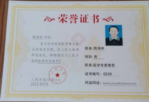 In October 2010, the 10th issue of "Journal of Traditional Chinese Medicine" was supplemented with an article on the medical case of Chen Hailin, and a paper certificate was issued by the Chinese Society of Traditional Chinese Medicine.
