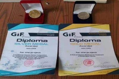 上面两块是俄罗斯国际食道癌金奖,俄罗斯国际乳腺癌银奖