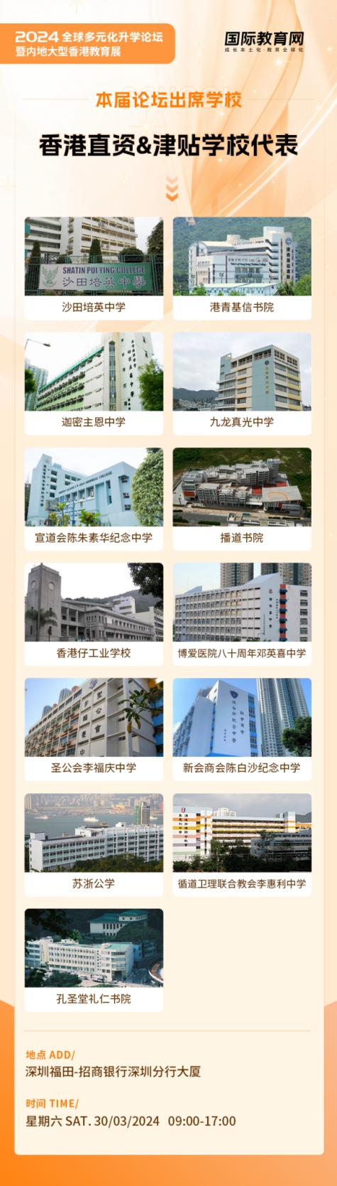 3月30日,由国际教育网主办的《2024全球多元化升学论坛暨内地大型香港教育展》将于深圳隆重举行。主办方汇聚来自大湾区优秀的国际教育领域的专家学者、行业精英,经验丰富的家长及优秀学生代表,为与会者带来高品质的讲座和激发灵感的交流。