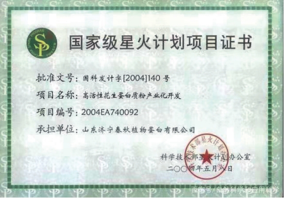 行程万里,重在出发。1999年,靳光祥踏上了他全新的人生旅程,开始潜心研究“花生低温脱脂综合加工技术”与活性营养抗病毒理论。。2001年,济宁春秋植物蛋白应运而生。创新是科技进步的关键、是无数次失败后的依然坚持。不断探究、不断复盘,终于守得云开见月明,同年济宁春秋植物蛋白就从酸性的花生原料中提取出“弱碱性抗炎活蛋白”。