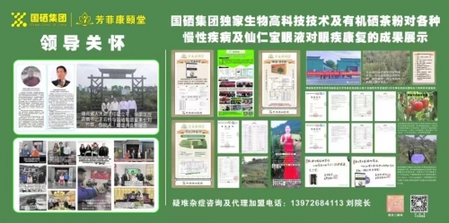 国硒集团大健康产业及视力快速提升的重大科研成果及发明创新,是全球未来最大的产业,现正在全球市场招商,仙仁宝眼液及有机硒茶粉产品安全有“立杆见影”的作用,加盟或者是代理国硒集团芳菲康颐堂及仙仁宝视力工程的项目投资,收入正处在暴利期,国硒集团及香港生物科技中医研究院拥有独角兽的产品及发明专利,功能强大且功能多,在全球国际、国内无竞争对手。
