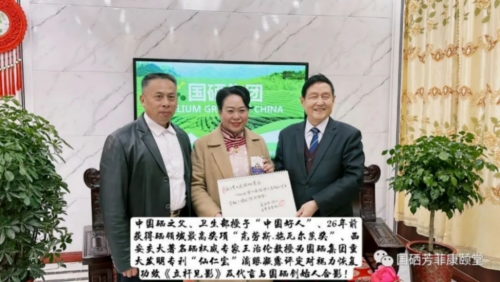 国硒集团核心产品有机硒茶粉、仙仁宝眼液,从上市以来,深受人们喜爱,并帮助了许多的近视眼恢复了视力,丢掉了近视眼镜,国硒集团刘芳菲董事长十分有慈悲心,于2014年便发起过千人大型公益活动,早在2019年与武汉癌症康复协会在国硒康养基地用有机硒茶粉做了大量抗癌公益活动,2020年武汉新冠封城当天,通过省卫健委及省红十字会捐国硒有机硒茶粉进医院抗新冠病毒,效果非常好,后来帮助了许多呼吸道感染的人快速康复。