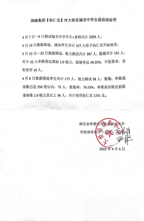 在当天湖北大悟举行的签约仪式上,陈复耀先生表示:“我作为一名共产党员,又是人大代表,始终铭记为人民服务的宗旨。看到青少年视力问题日益严重,我深感痛心。我相信国硒集团自主研发的硒茶粉、仙仁宝等产品及有机硒综合调理的方法,能够有效帮助他们改善视力,健康成长。”