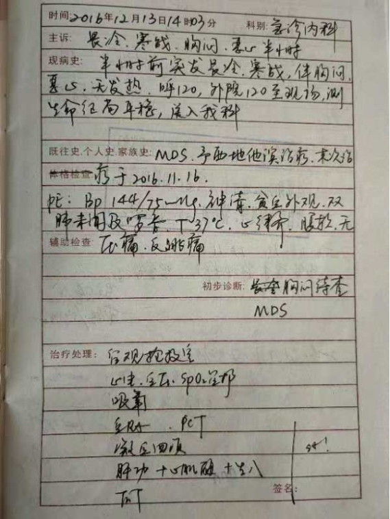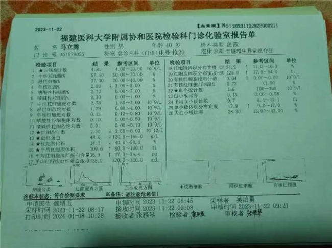 白血病一例,马立藤,男,41岁,地址:福州市仓山区浦口新城9号楼204。