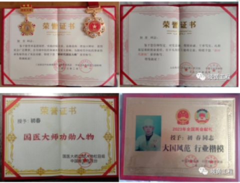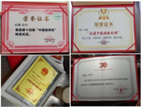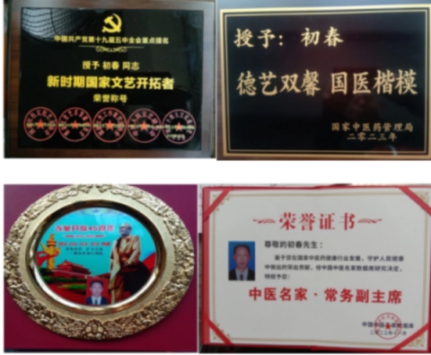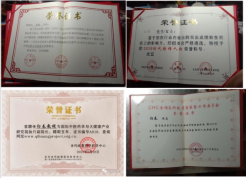 行业百名功勋人物奖‘华夏名医”“当代中国最具有影响力的英模人 物 ~ ‘建国 60 周年中国企业改革创新管理突出贡献人物”“中国传 统文化名人”、“ 中华杰出人物”“中流砥柱·共和国先锋人物”“中 国崛起·共和国建设功勋人物” 、“时代骄子”称号奖等各种荣誉称 号。科技成果 :曾荣获金牌奖、国际金牌奖、两个金牛奖、一等奖若 干项 ,二等奖、精粹成果奖、优秀论文奖、创新成果金奖、国际成果 金杯奖、改革开放三十年中华医学发展创新成果奖、中华医学发展创 新成果奖、大医精诚金牌奖、金鼎奖等等若干奖项。2011 年 1 月《独 创阿是穴刺拔贴药疗法经验体会》一文 ,荣获中国医学专家理论创新 论文一等奖 ,同时荣获“中国优秀基层医学专家荣誉称号。2011 年 10 月《独创督奇穴刺拔配服中药通督正脊疗法体会》一文荣获“中 国医学专科专病优秀论文一等奖” ,同时荣获“中国医学专家专科专 病( 中医)优秀专家称号”。2012 年 7 月《危重症治验三则》在“中 国医学专科专病新世纪创新优秀论文奖”( 一等奖) ,同时荣获中国 医学专科专业病新世纪创新贡献奖。2012 年参加了国际中医原创思 维与扁鹊脉法论坛和首届华人针灸刮痧交流大会暨针灸推拿特技展 演大会积极献方 ,献策 ,为中医事业做出了自己的贡献。2014 年在 共和国国庆庆典活动中分别荣获“最美点亮中国— 中华最美楷模人物” “美丽中国—共和国建设功勋人物”“社会改革发展杰出贡献人物” “中华魂当代人民功勋人物”“共和国突出贡献人物”。“新中国建 设功勋人物”十一国庆颁奖、行业发展标兵人物。荣获“共和国建设 十大杰出功勋人物”称号。
