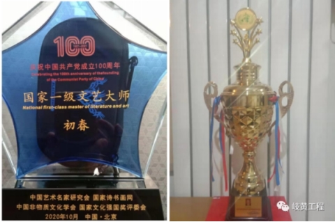 2018 荣获共和国诗书画杰出贡献奖 ,国家一级诗书画家称号。 中国 艺术金墨奖 ,国家改革开放四十年风云人物、杰出贡献人物、当代翰 墨名家称号 ,2019 第七届中国艺术节最高奖 ,金猪奖 ,终身成就奖 ,百姓最喜爱的艺术家称号 ,中华国礼艺术大师 ,当代国魂国艺大家 , 人民艺术十大家。