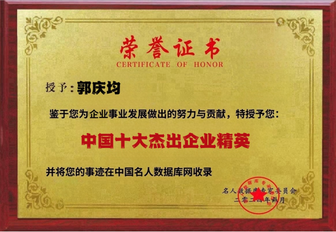 多年的奋斗历程,让郭庆均屡获殊荣。起重设备行业十大影响力人物,中国杰出人物代表,中国建筑金属结构协会建筑施工设备分会副会长,第六届公益事业大典公益人物代表,北京民营经济发展促进会国际合作部副主任委员,中国开发区协会平台经济专业委员会副理事长,是当之无愧的时代楷模。