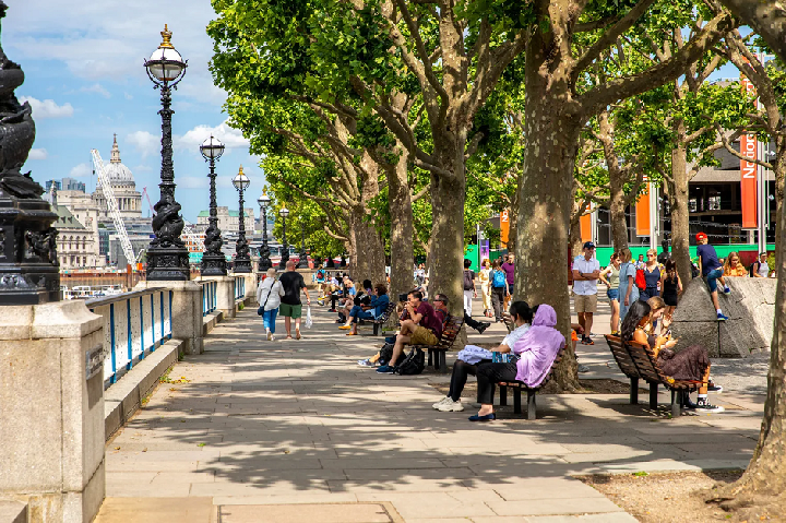 晨光初照,泰晤士河畔的伦敦南岸在金色的光辉中苏醒,滑铁卢站(Waterloo Station)的车流如织,人群从四方汇聚,踏上充满活力的步伐。随着一座座现代建筑拔地而起,伦敦南岸的街景焕然一新,步道上植被丰茂、公共空间开阔,城市脉络渐渐织入了居民生活的方方面面。