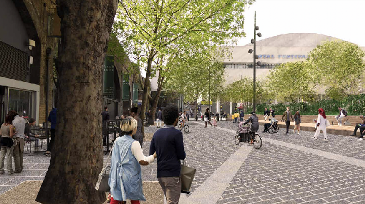 为了应对该区域基础设施落后和日益增加的人流量之间的不平衡,兰贝斯议会(Lambeth Council)提出了南岸脊柱路线(South Bank “Spine Route”)改造计划。计划将重点改造区域集中在伦敦眼(London Eye)附近的银禧花园(Jubilee Gardens)和Oxo Tower附近的西班牙伯尼花园(Bernie Spain Gardens)之间的区域,涵盖了皇家节日音乐厅及其邻近的文化场所。