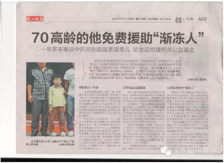珠江晚报报道张清海公益治疗渐冻人