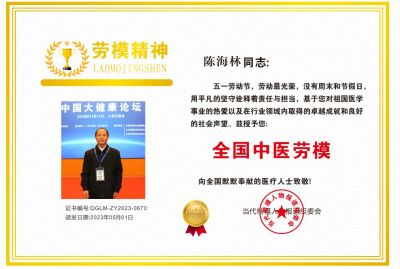 恭贺著名中医肿瘤专家陈海林教授 荣获《全国中医劳模》荣誉称号