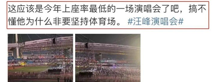 据传体育场内空空荡荡,最后十几分钟甚至免费放人进去,要是演唱会满座,自然不会出现放人进去增加气氛的状况。