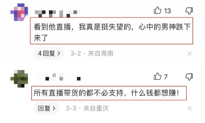 网友对于汪峰也加入直播带货感到失望,有位网友更是直言“所有直播带货的都不必支持”。